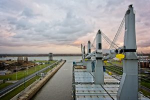 Die Bright Sky lässt die Berendrechtsluis hinter sich und kann jetzt in den Antwerpner Hafen einfahren