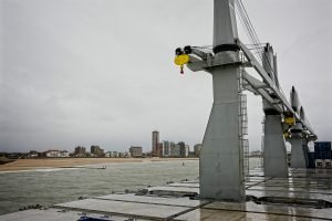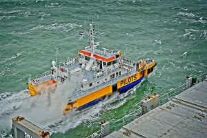 Die Leiter für den Lotsen wird wieder aufgerollt
