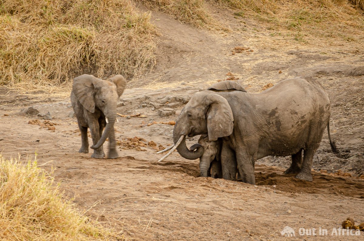 Elefanten graben in trockenen Flussbetten nach Wasser