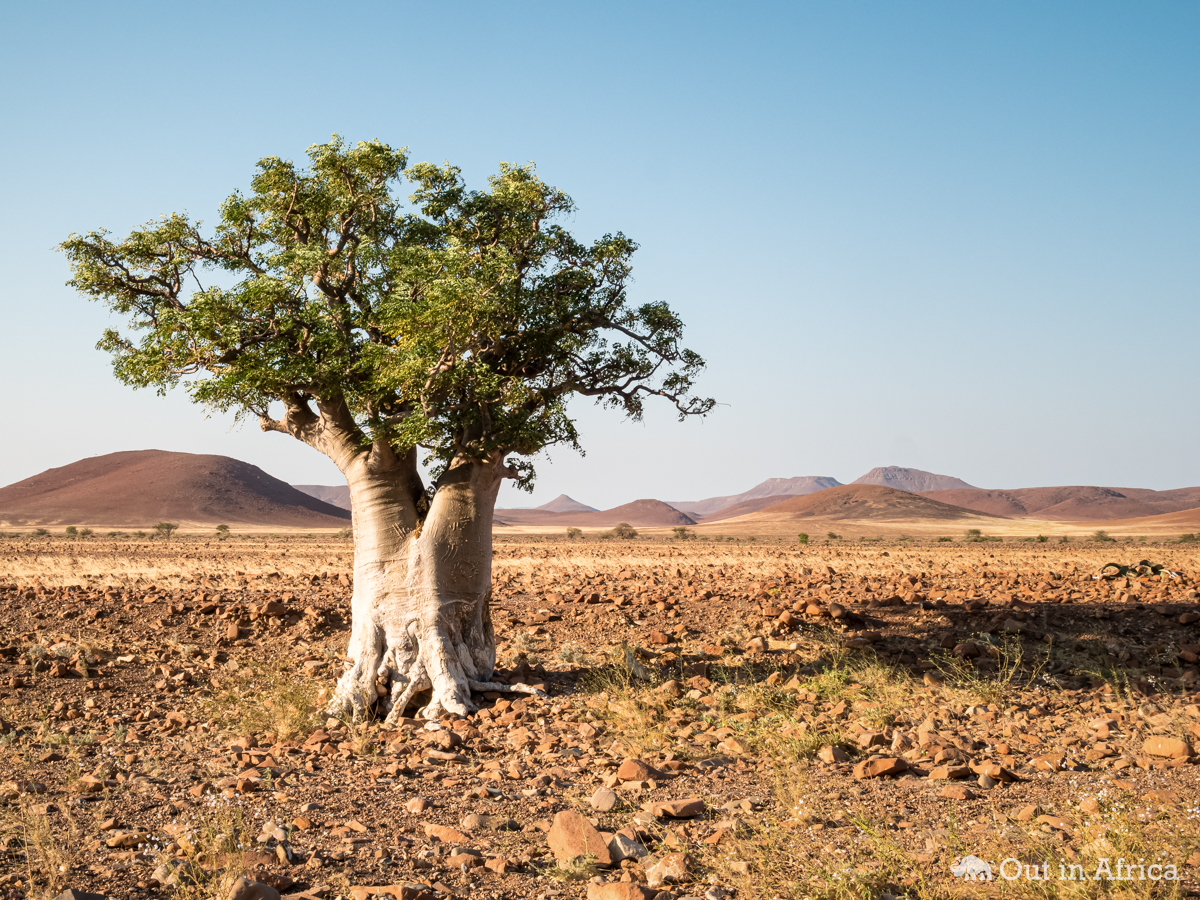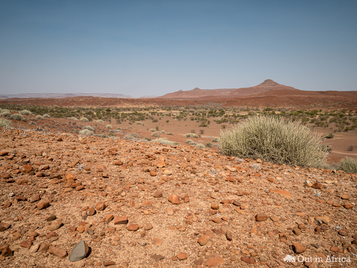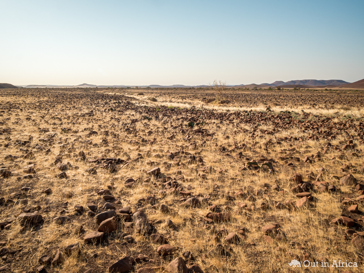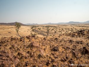 Typisch fürs Damaraland sind die Steine, mit denen der Boden besät ist