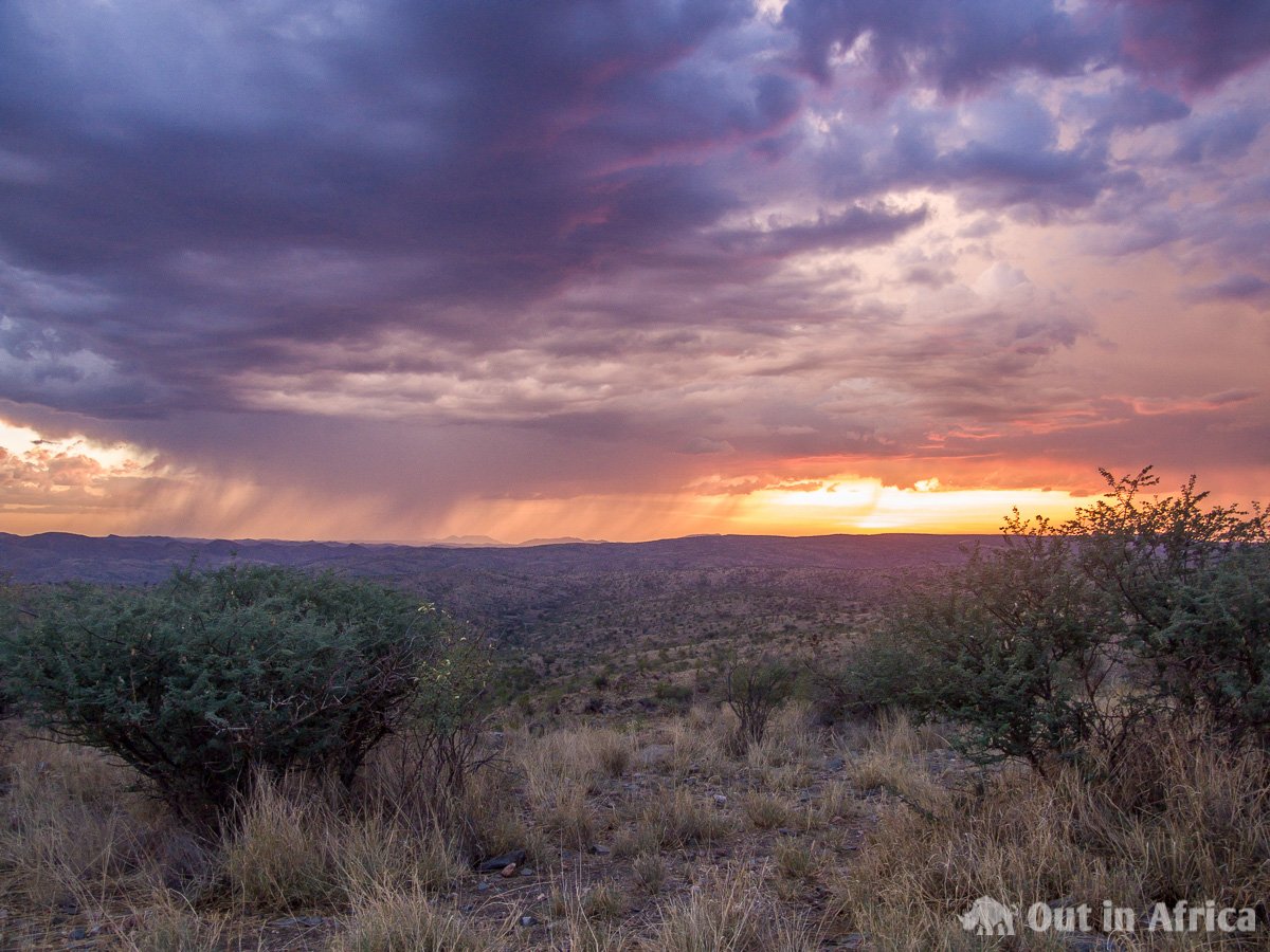 Regen am Us-Pass. Am Horizont der Gamsberg.