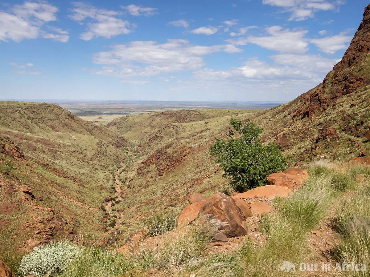 Die Aussicht nach Süden von dem Brukkaros Wanderweg, wenn er den Krater verlässt.