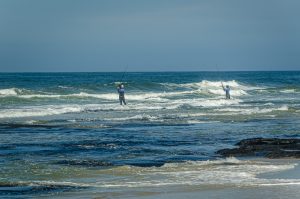 Angler in der Brandung