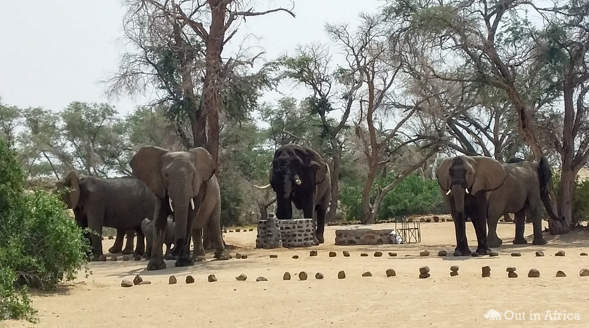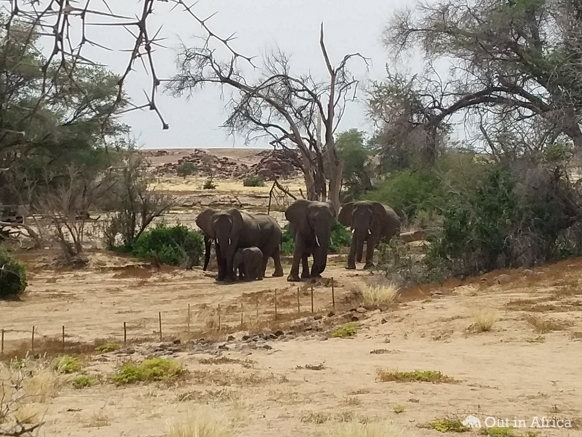 Die Elefanten sind etwa 20 Meter entfernt