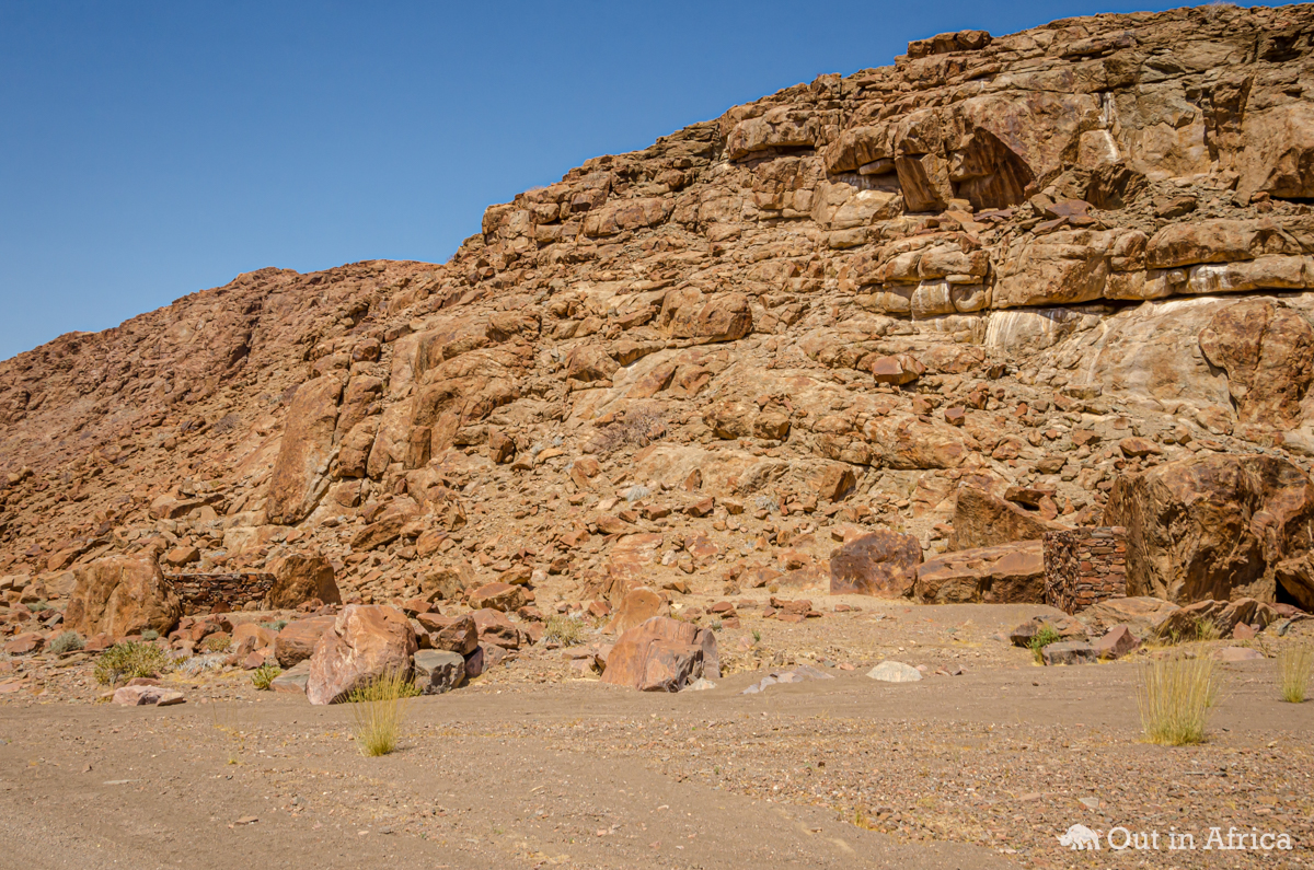 Mauer vor einem Felsen