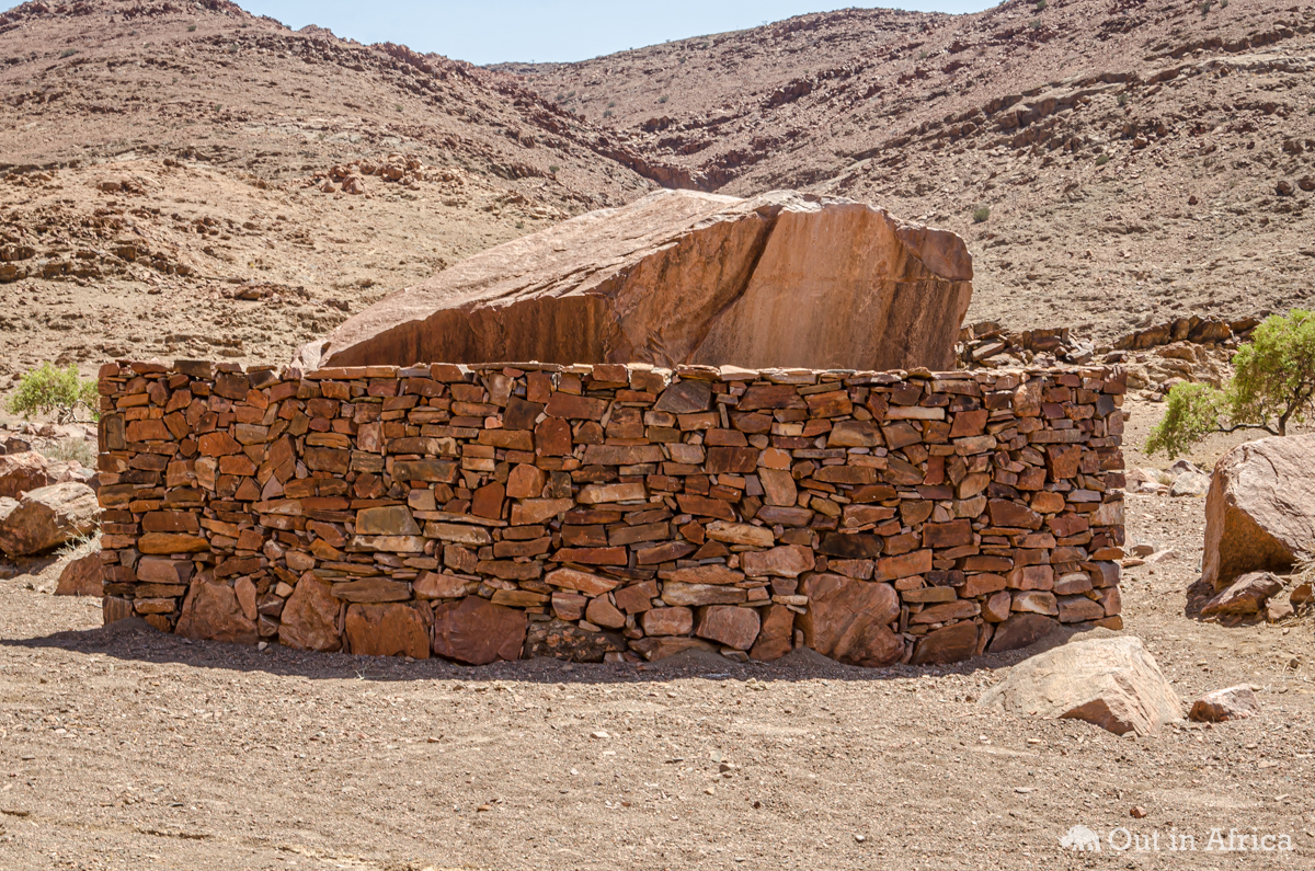 Mauer vor einem Felsen