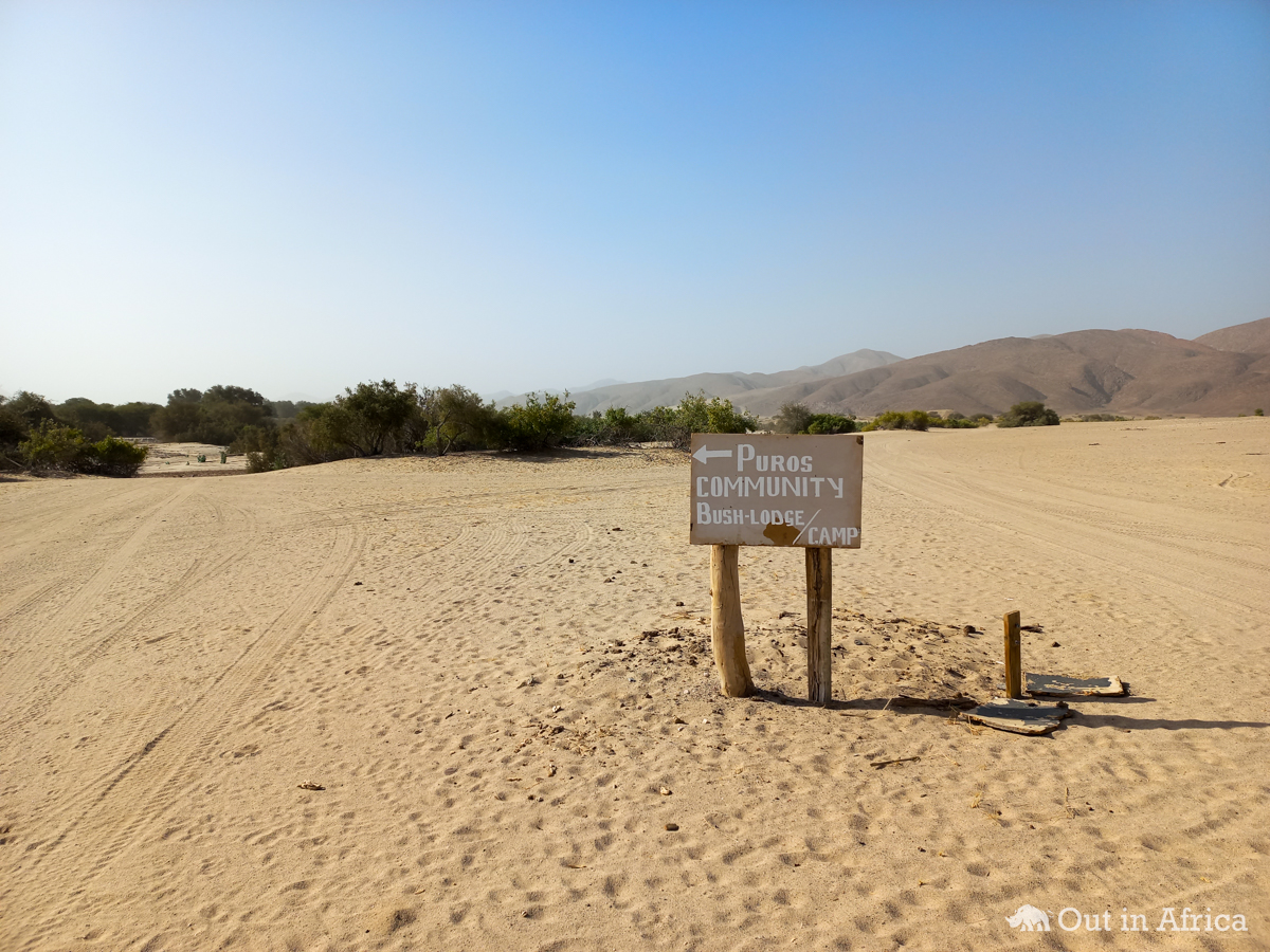 Wegweiser zur Puros Community Bush-Lodge und Campsite