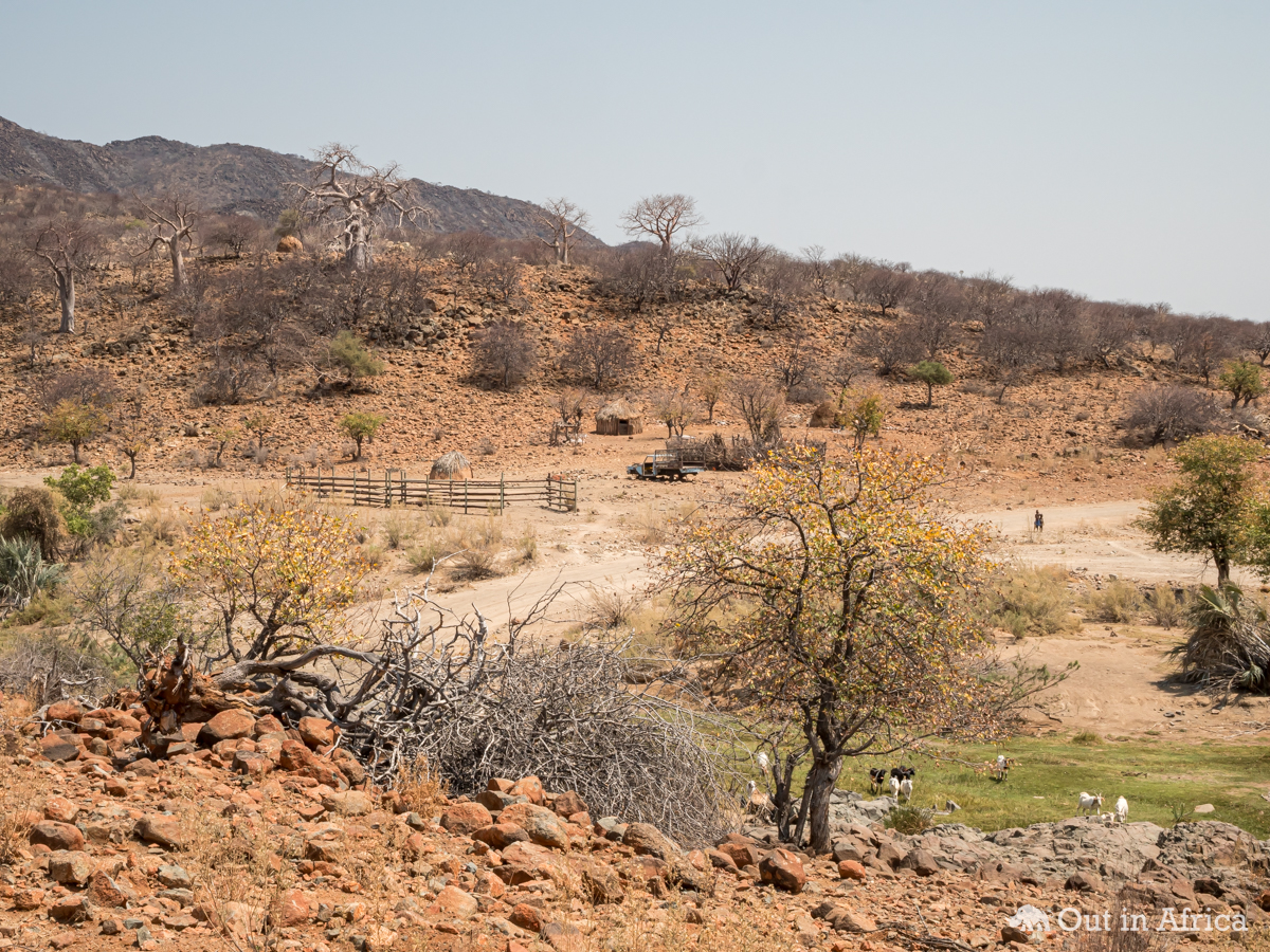 Himbasiedlung unter Baobabs