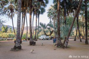 Unsere Campsite unter Palmen bei der Epupa-Lodge