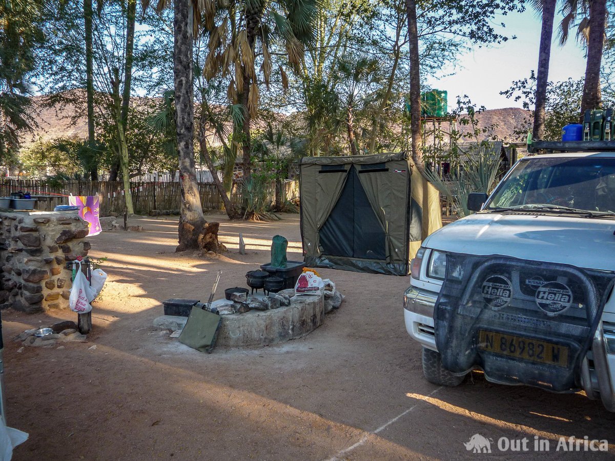 Unsere Campsite unter Palmen bei der Epupa-Lodge