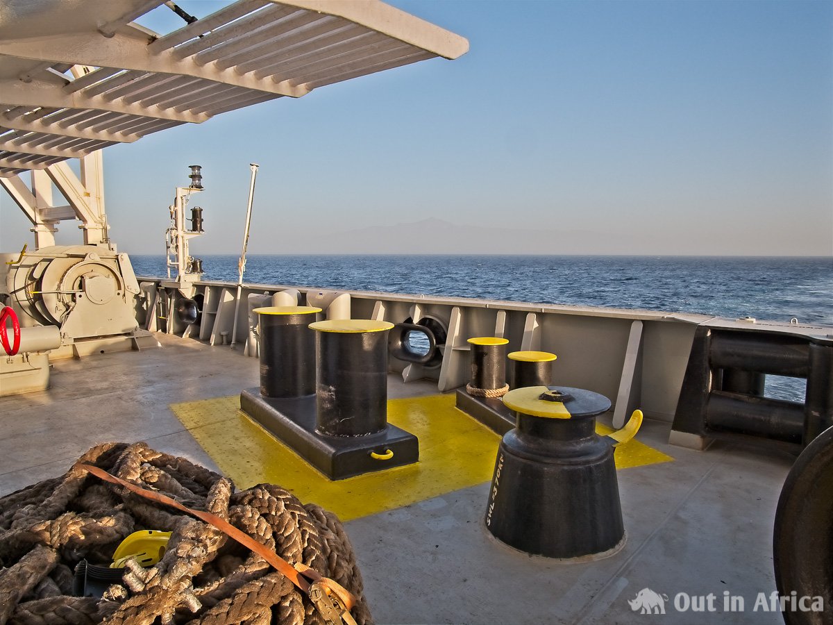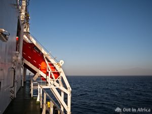 Das Rettungsboot vom C-Deck aus geseen – im Hintergrund Gran Canaria