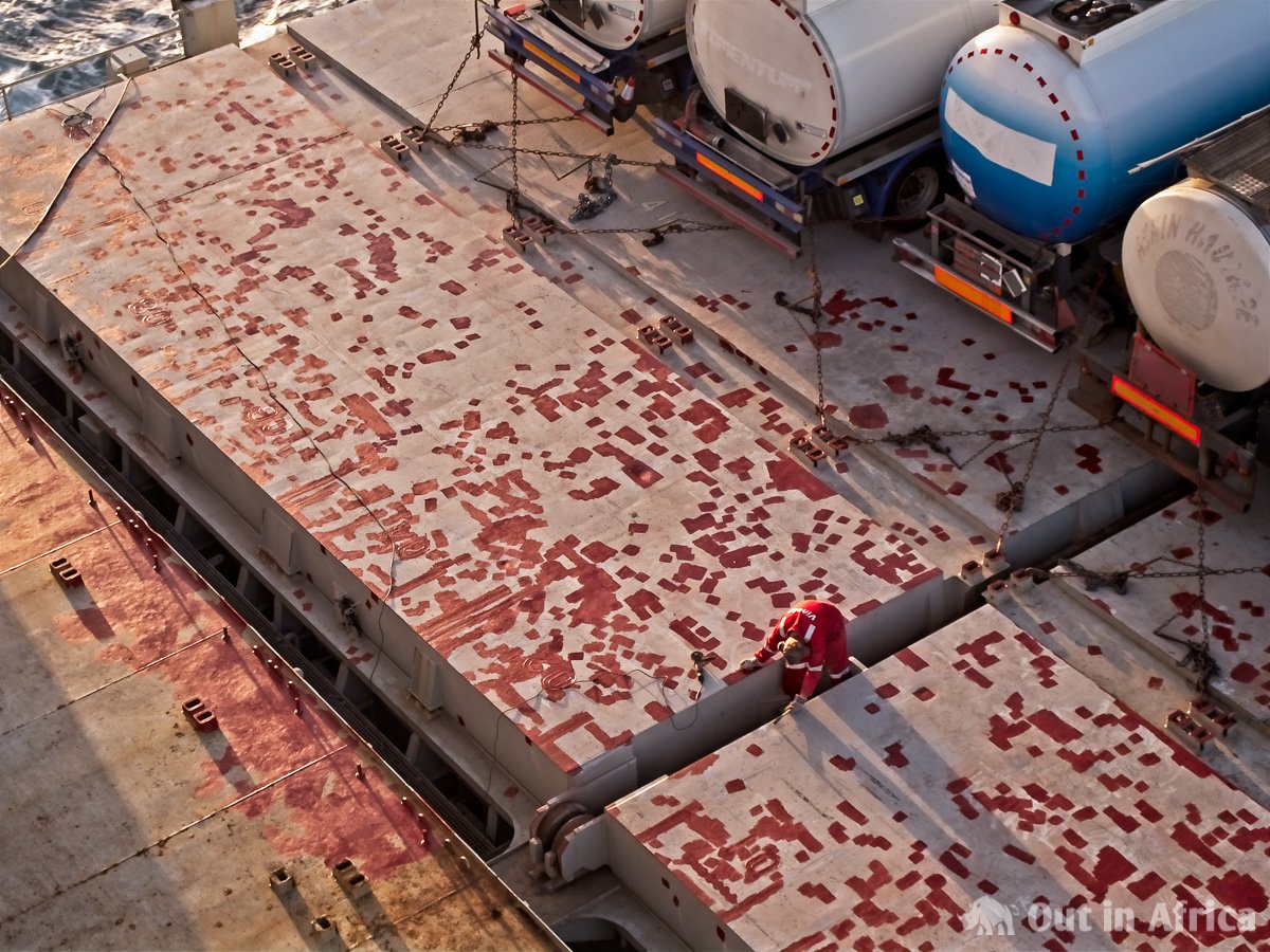 Der Rost auf dem Deck wurde entfernt und auf den kahlen Stellen Untergrundfarbe aufgetragen