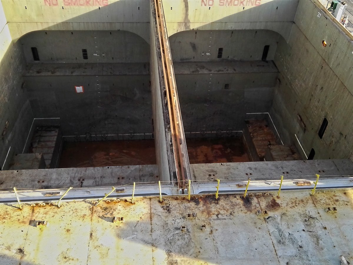 Ein Frachtraum der Bright Sky ist leergeräumt. Er ist 15m tief.