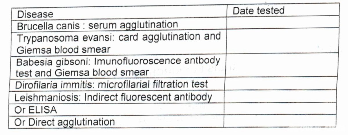 Bluttests, die erforderlich sind, wenn bestimmte Krankheiten im Ursprungsland vorkommen