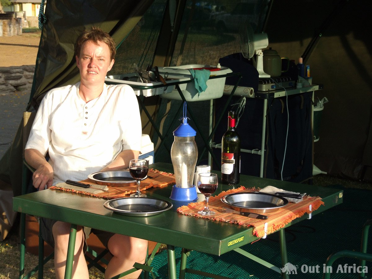 Unser großes Zelt, in dem wir wohnen, wenn wir länger an einem Ort campen. Vorne ist die Küche, hinten ist ein Schlafzelt.