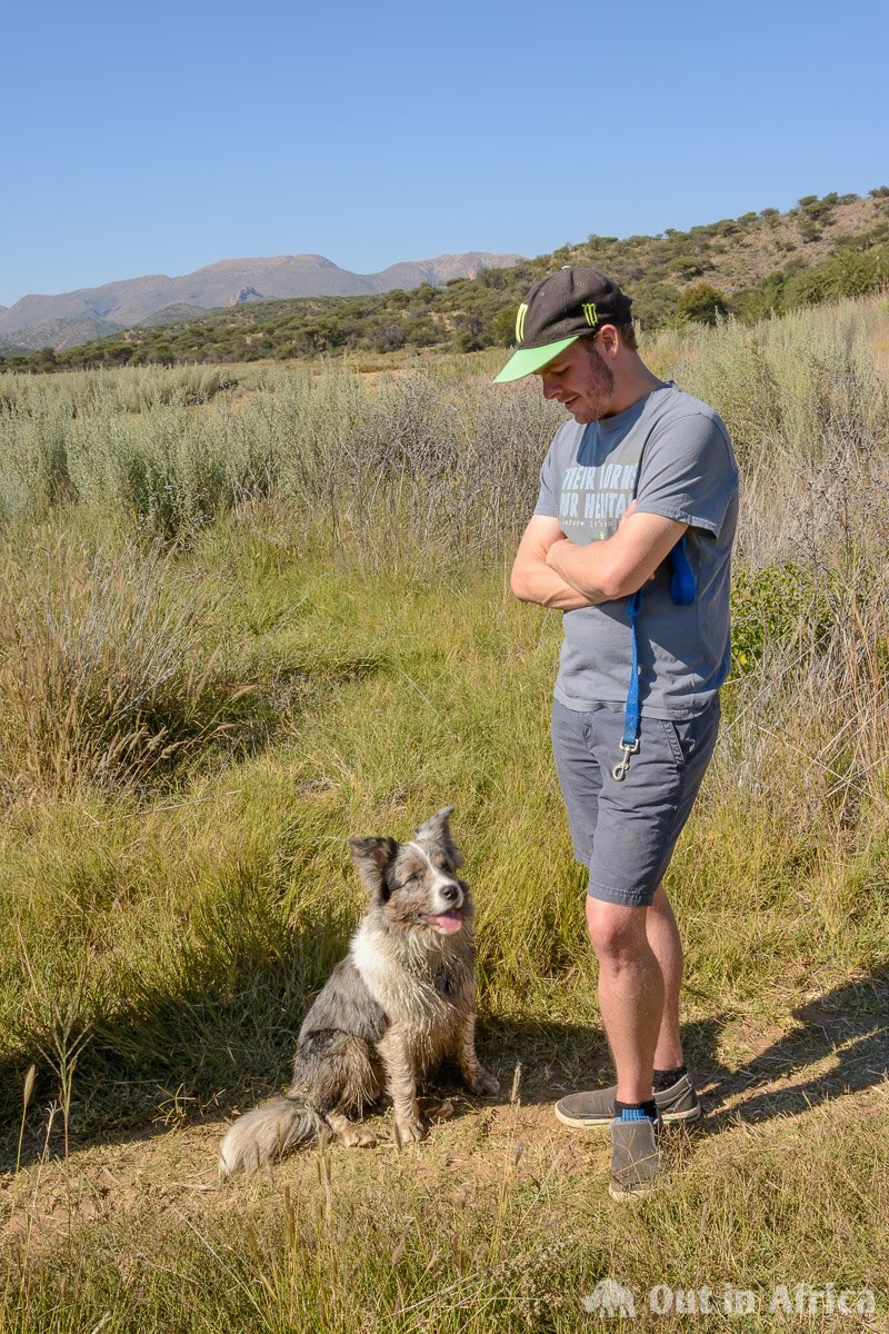 Nach einem Spaziergang um und Bad im Avisdamm hat der Hund eine Dusche nötig